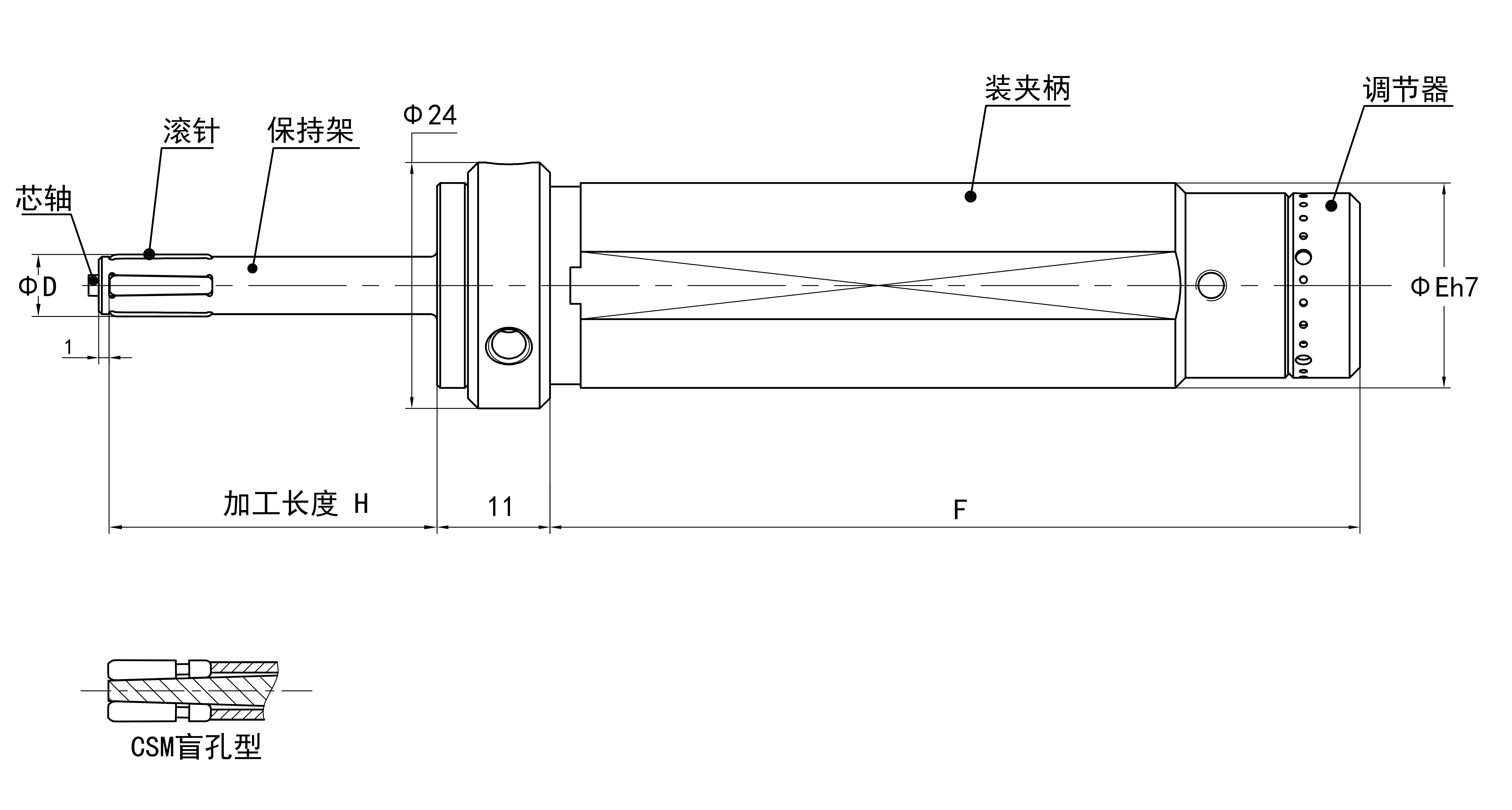 本工具調(diào)節(jié)機構(gòu)內(nèi)藏在柄部內(nèi),并且柄部標(biāo)準(zhǔn)可根據(jù)CNC機床安裝定制,比較適合有行程限制或刀具相鄰安裝會干涉的機床,一般用在走芯機較多。